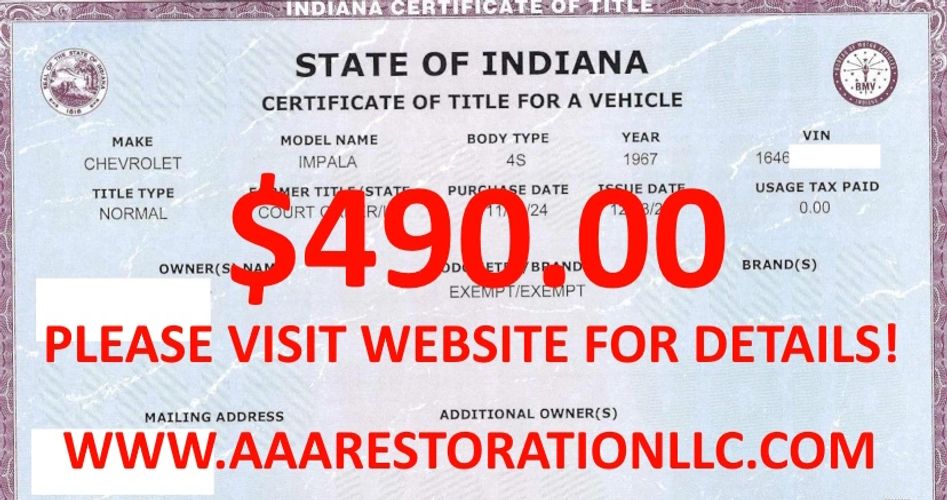 You will also need to sign a notarized statement that you also certify the vehicle is free and clear of any and all liens and will guarantee clear title to any future owner. With these three documents we will petition the court for a court order to provide to the Indiana BMV with additional required documents to issue a valid Indiana title to us.